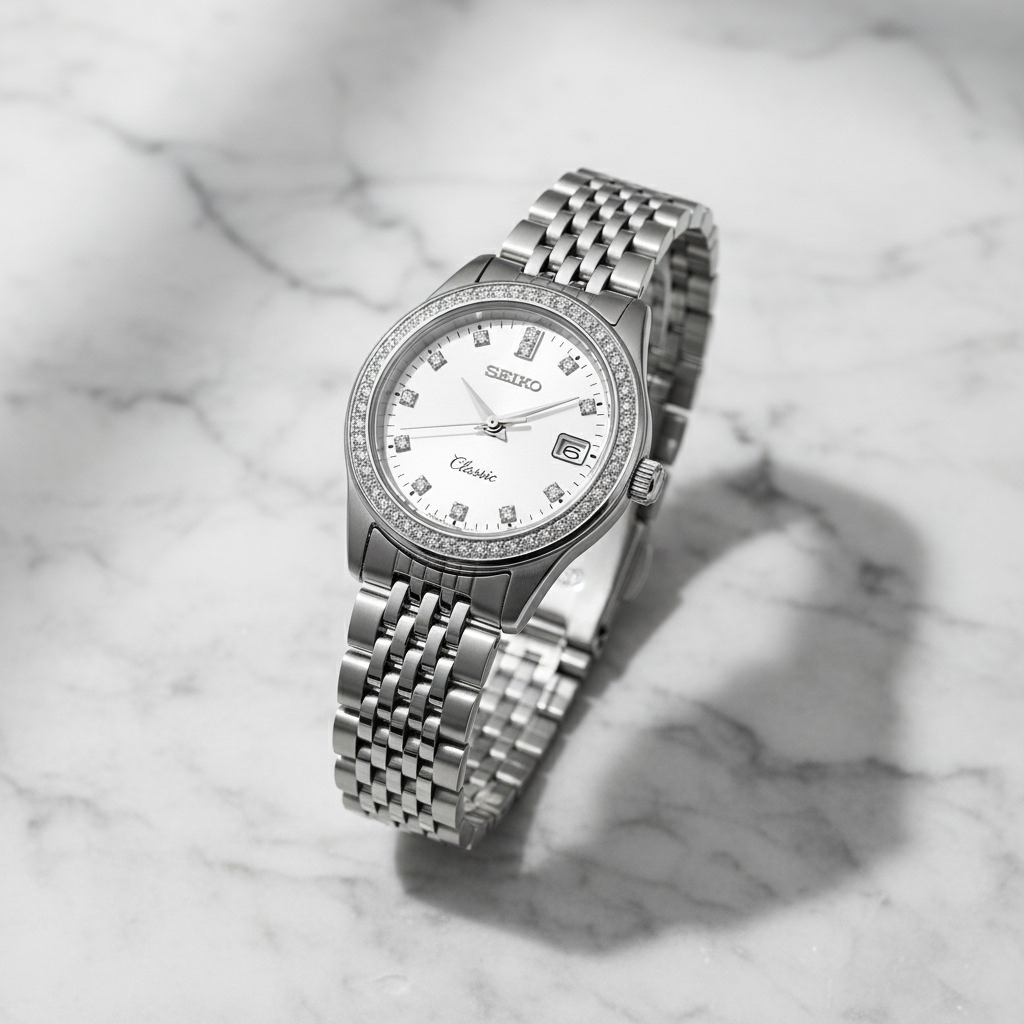 Explore our ladies collection featuring stylish neckless, elegant earrings, trendy watches, and other fashionable accessories.
